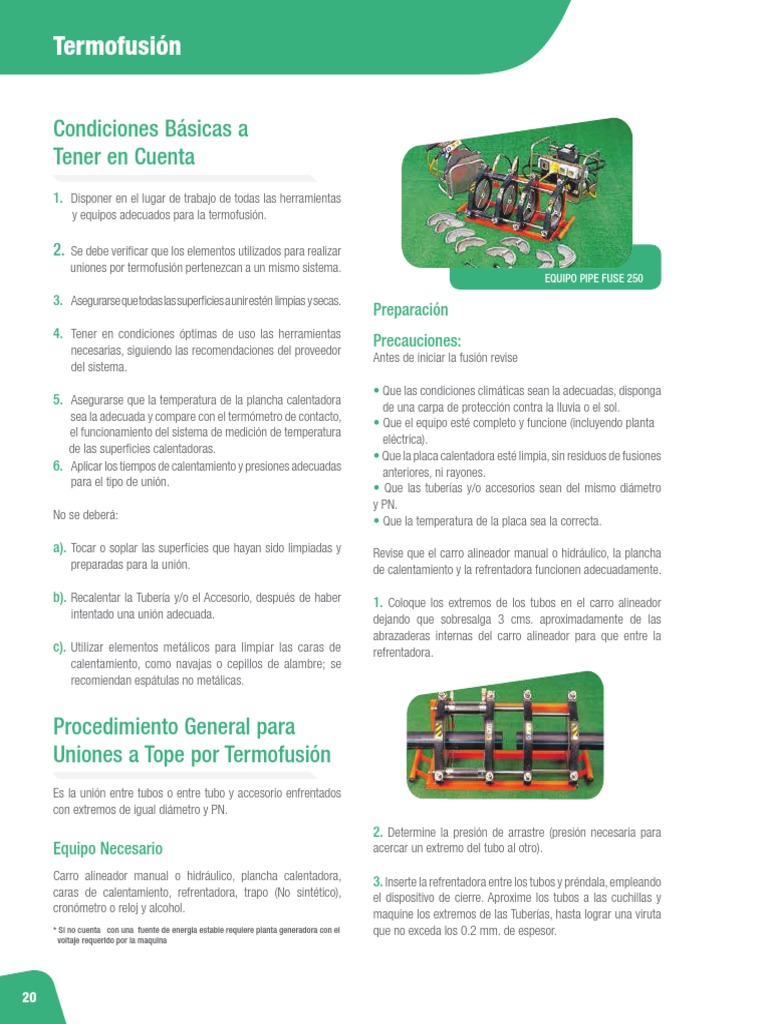 La termofusion de polietileno es un proceso básico de instalación de material termofusionable pead donde el proceso consiste en lo siguiente. Existen 3 tipos de fusiones de tubería plastica ppr y hdpe pe. 17 pasado el tiempo de calentamiento separar las partes a soldar del calefactor.